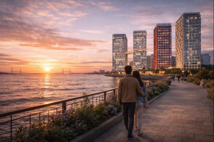 Вы живёте у воды — с прогулками вдоль набережной, свежим воздухом и ощущением простора. Закаты здесь становятся частью повседневной жизни, а вода — постоянным фоном вашего дома.