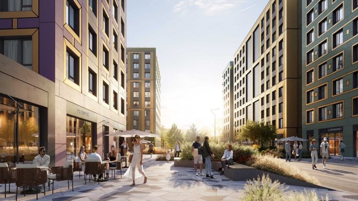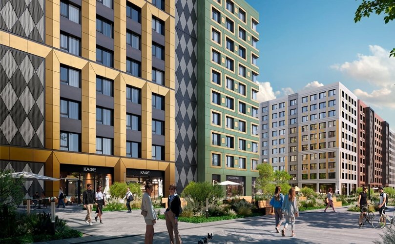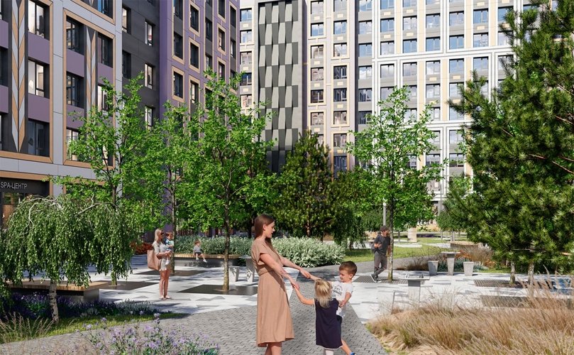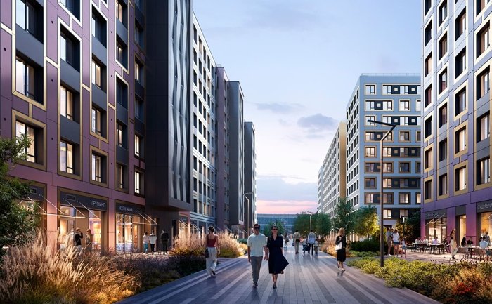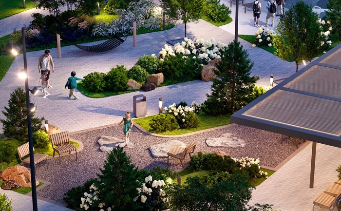 Через квартал проходит собственный прогулочный маршрут с кафе, магазинами и зонами отдыха. Это место для вечерних прогулок и встреч с соседями.