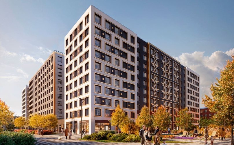 Шесть корпусов с индивидуальными фасадами формируют цельный, но не перегруженный ансамбль. Архитектура подчёркивает современный характер района.