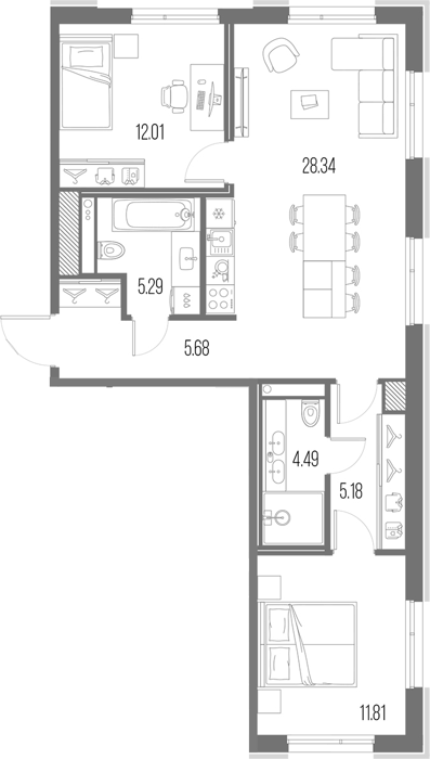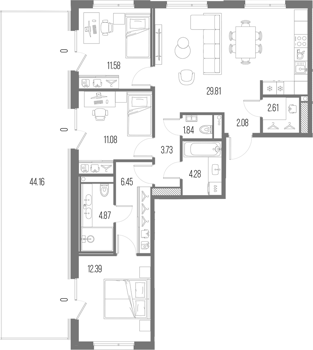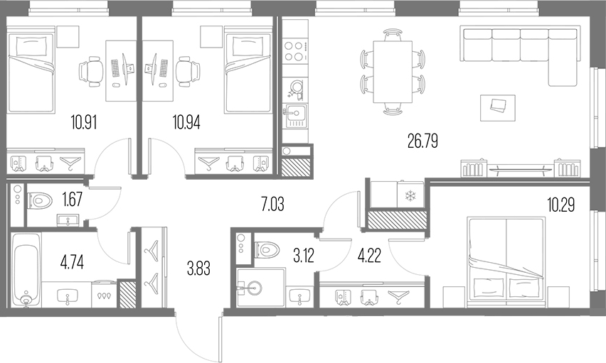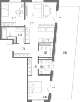 Площадь от 27.83 м2