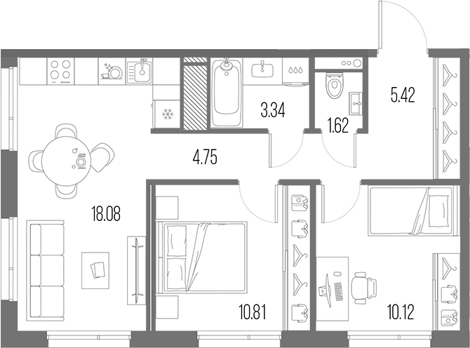 Площадь от 75.24 м2