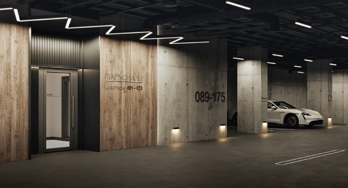 Двухуровневый паркинг на 700+ машиномест, с заездом по распознаванию номера. Вы паркуетесь удобно и поднимаетесь домой, не выходя на улицу.