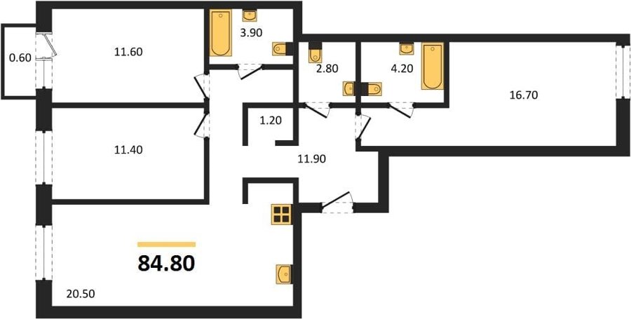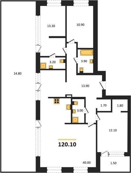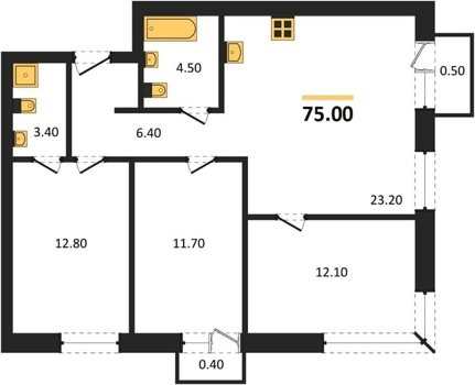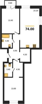 Площадь от 74.1 м2