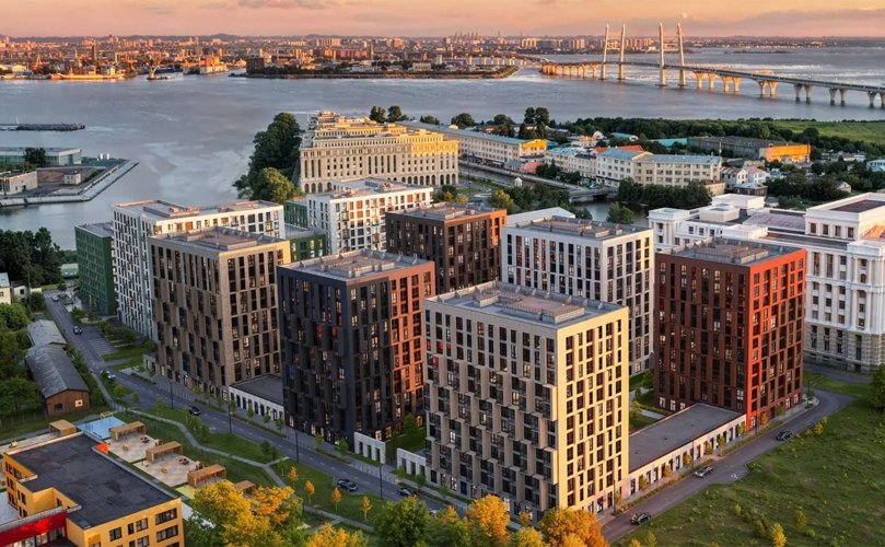 Бизнес-квартал у Финского залива с видами и террасами. Гранд-лобби, двор-парк и подземный паркинг.