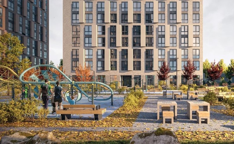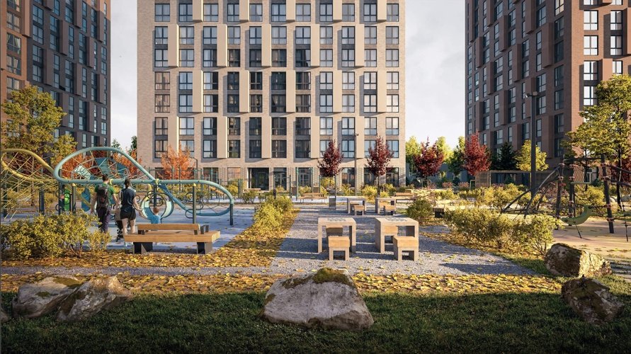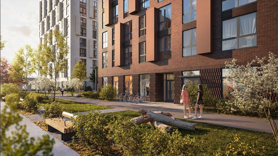 Приватный двор с озеленением и зонами отдыха. Вход по ключ-карте только для жителей.