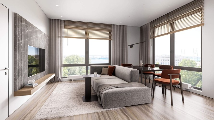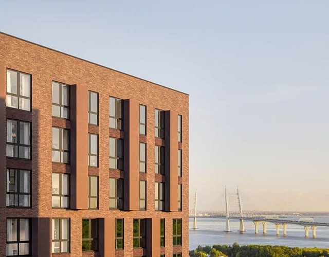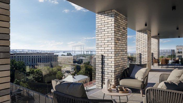 Квартиры с панорамными окнами, угловым остеклением и индивидуальными террасами.
