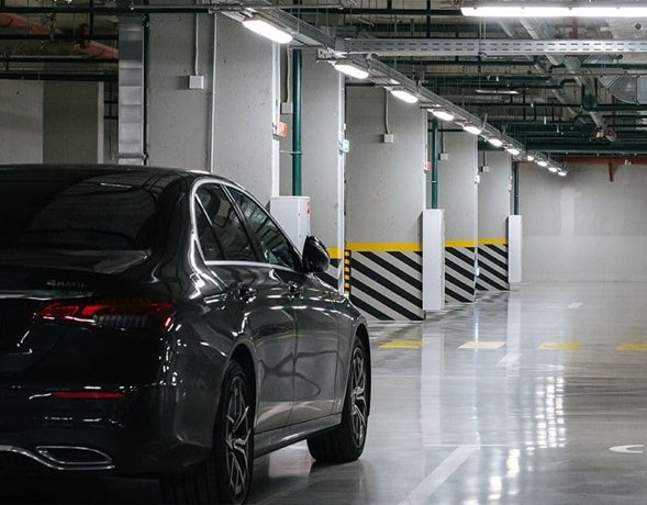 Паркинг на 720 мест под домами с видеонаблюдением и лифтом на этажи.