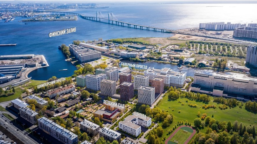 ЖК расположен на Васильевском острове, в районе Галерной гавани, в шаговой доступности от Финского залива и рядом с «Севкабель Портом». До метро «Приморская» — около 20 минут пешком, удобный выезд на ЗСД.