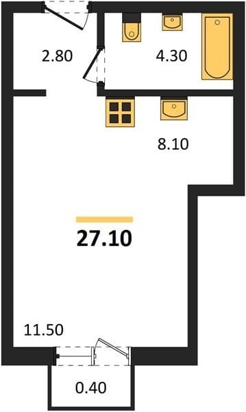 Площадь от 27.1 м2
