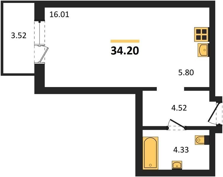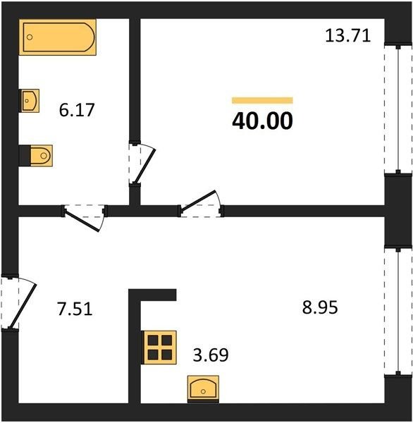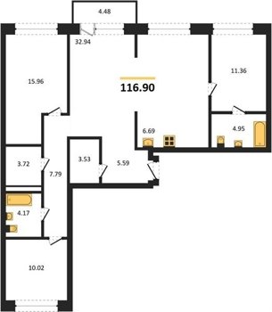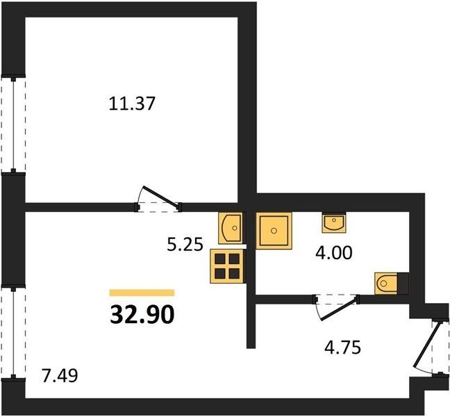 Площадь от 32.9 м2