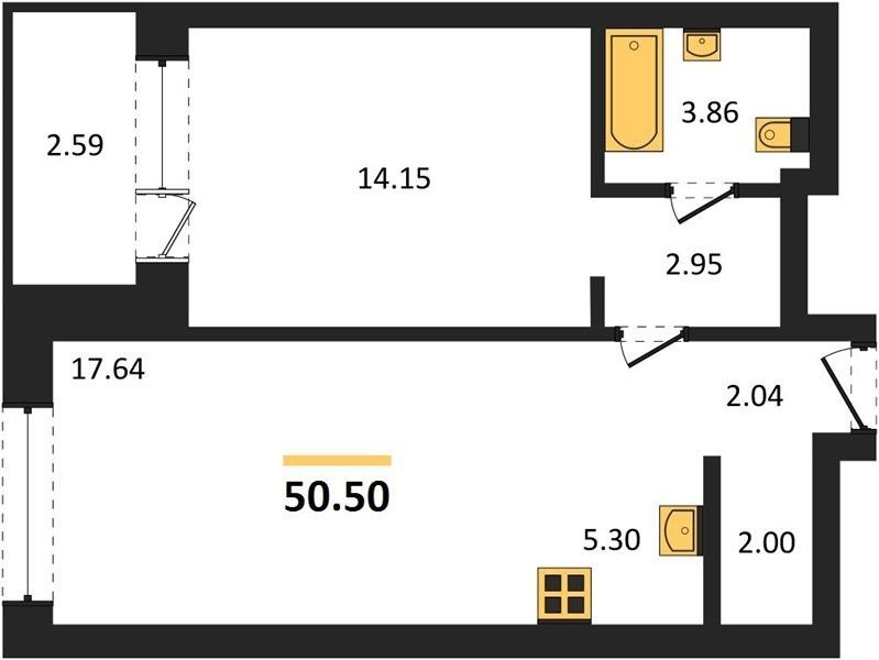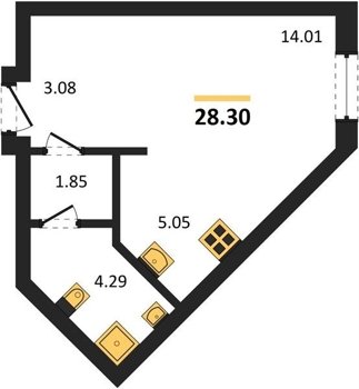 Площадь от 28.3 м2