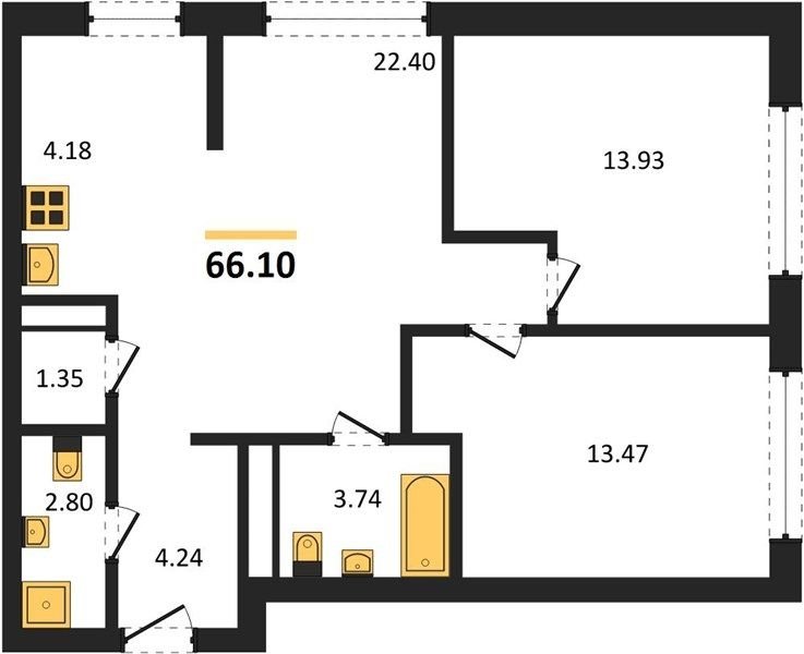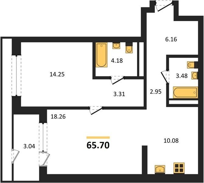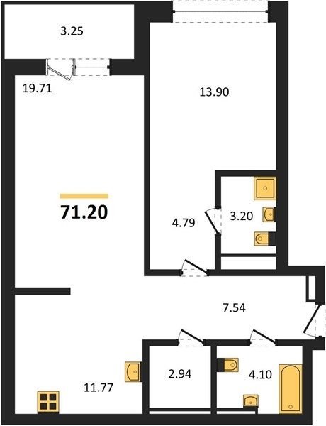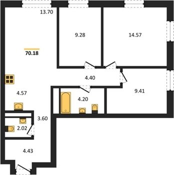 Площадь от 70.2 м2