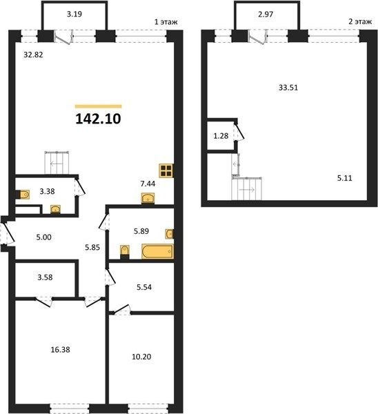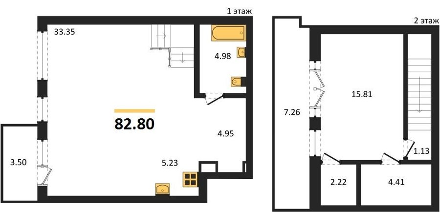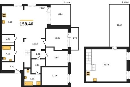 Двухуровневые квартиры на первых этажах с собственным палисадником и выходом во двор.