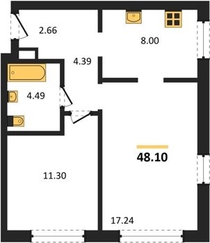 Площадь от 48.1 м2
